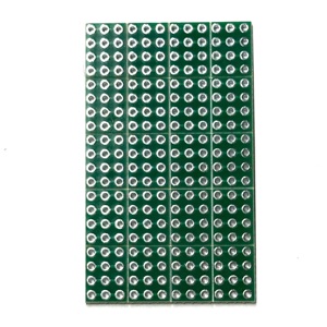 コンスルーを使った検査治具やDIP変換アダプターなどを作る時、2列のピンソケットをブレッドボードに挿したい時などに両面基板で隣のランドとつながっているユニバーサル基板があったら良いのにと思ったのでそんな基板を作りました。